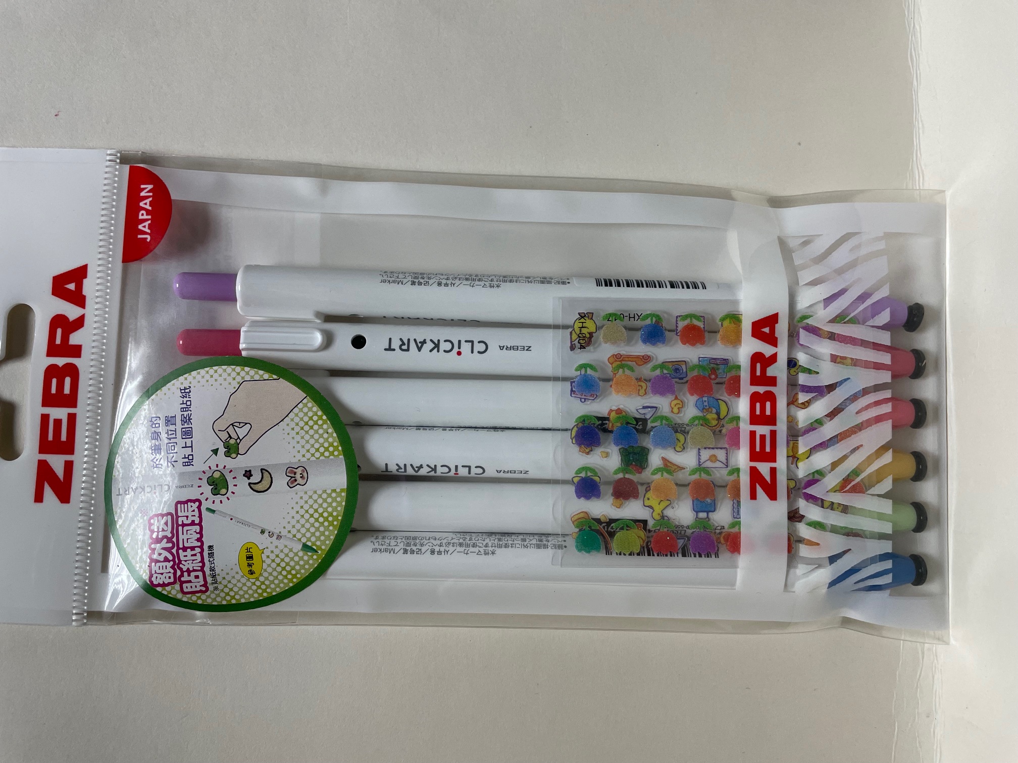 Zebra CLICKART 6支裝按壓式水性彩色筆 連貼紙