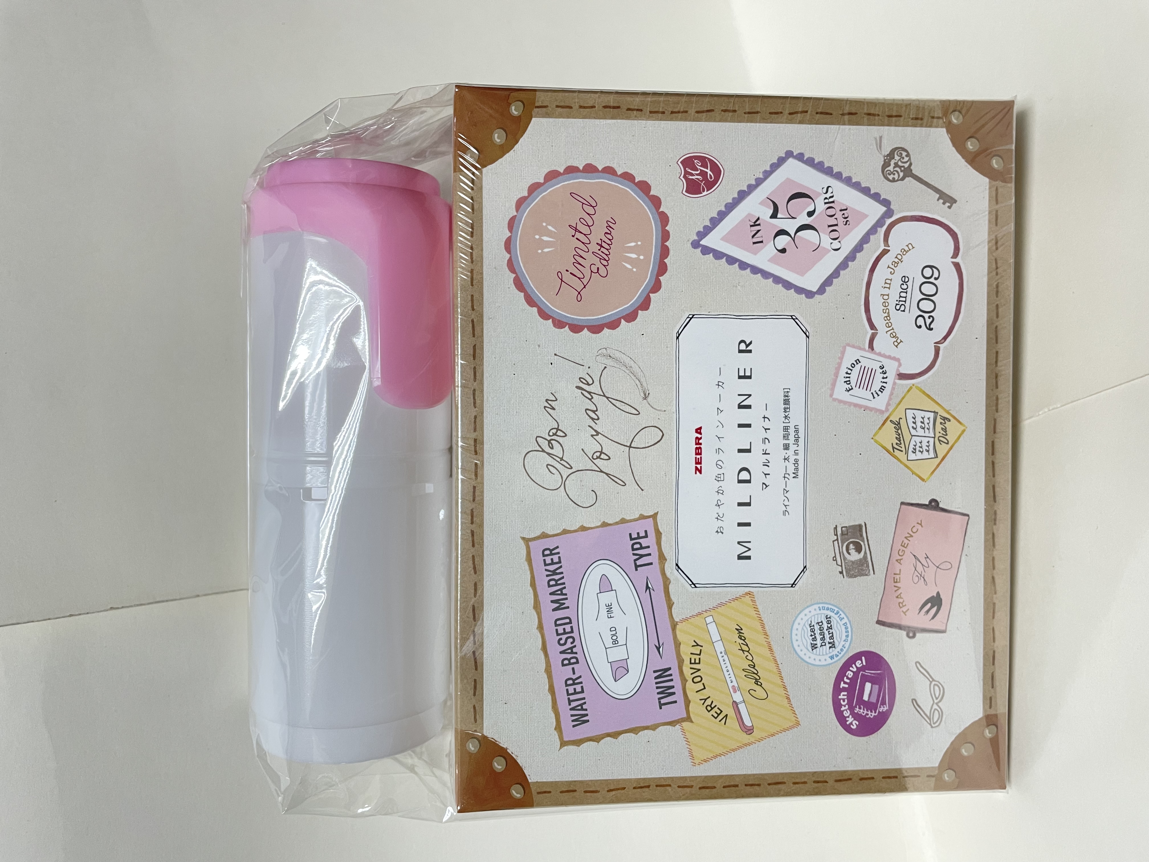 限量35色套裝以行李箱作造型,行李箱內有三種旅行主題,分別是列車之旅、天空之旅及船之旅,每個旅程都承載著不同顏色, 附Mildliner 筆筒一個及塑料手抽袋。